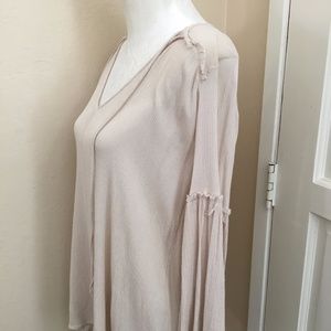 Top has never been worn, I washed but did not wear. The color is a very light Taupe color. Purchased from the store Vici.