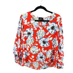 Vibrant red blouse with bold floral design. Features long sleeves and a relaxed fit. Perfect for adding a pop of color.