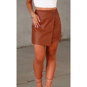 Vici Brown Faux Leather Mini Skirt Brown Size Medium a985