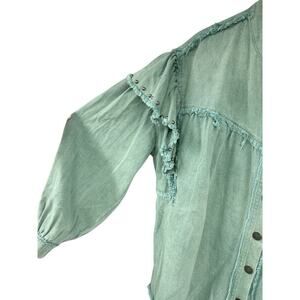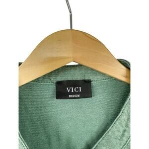 Vici Collection Green Stuffed Ruffle Shoulder Oversized Shacket Jacket Womens M