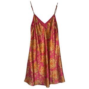 Vici Damask V-Neck Satin Cami Slip Mini Dress Pink Yellow Size XS
