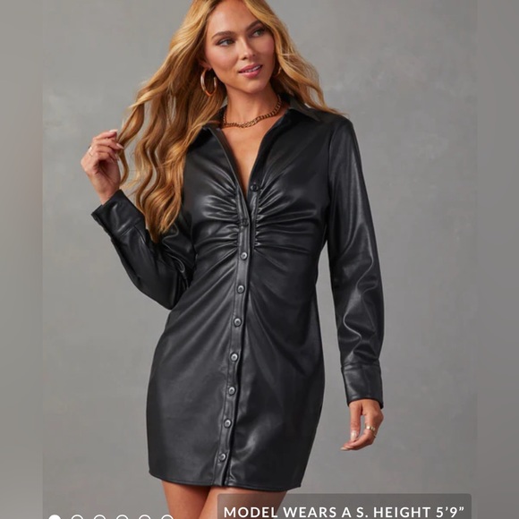 Vici Faux Leather button down mini dress