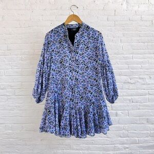 Vici Floral Mini Dress XS Blue Pink Casual Cottagecore Shirt Dress Summer Boho
