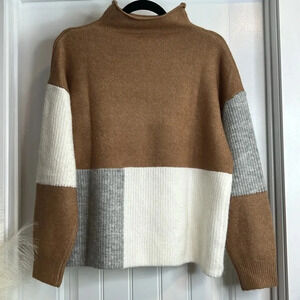 Vici Tan, Cream and Gray Color Block Funnel Neck Sweater. Size Small.