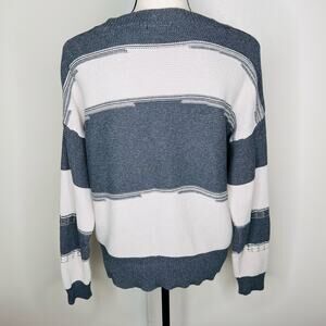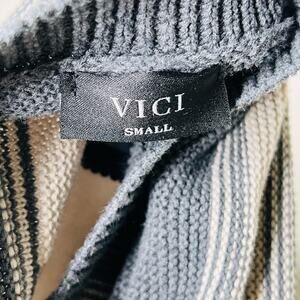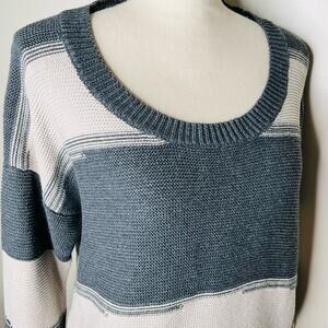 Vici Gray Cream Stripe Sweater Women's Small Pullover Cotton Chic Casual