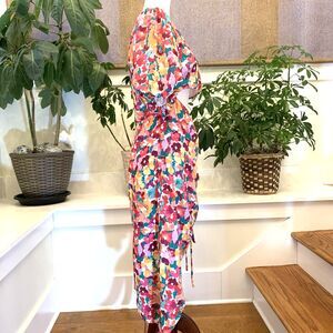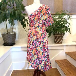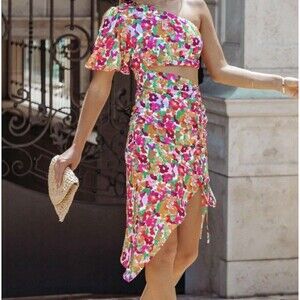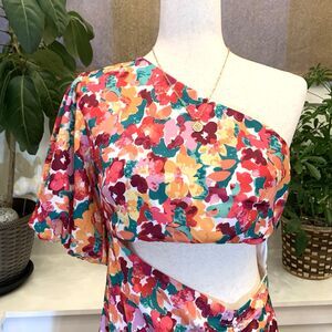 Vici Jeneva Dress Large Floral Cutout Ruched Midi- NWT Women One Shoulder