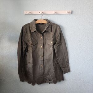 Vici NWOT distressed jacket (shacket) side pockets button front