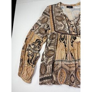 Keywords: Vici, Paisley, Blouse, Top, Bohemian, Boho, Tassel, Long Sleeve, Small, Brown, Black, Casual, Chic, Festival, Relaxed Fit