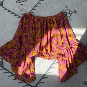 Vici Pink and Yellow Floral Dress off shoulder crop top