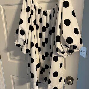 The Shanie Polka Dot Mini Dress offers a playful yet polished look made for sunny-day slaying! Designed in lightweight poplin fabric, this dress is as comfortable as it is chic. The off-the-shoulder styling with elastic neckline trim gives it a flirty, feminine vibe, while the puff blouson sleeves with elastic cuffs add a touch of drama that feels effortlessly on-trend. Whether you’re heading to a brunch date or a daytime celebration, this dress is your perfect match.