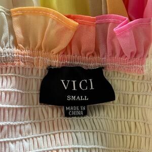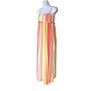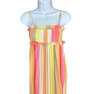 Vici Rainbow Maxi Dress Size S Smocked Cutout Pleated Resort Style
