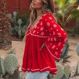 Vici Red & White Roses & More Embroidered Blouse Size Small New With Tag