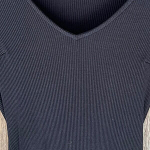 Vici Ribbed Long-Sleeve V-neck Bodysuit in Black Size Medium