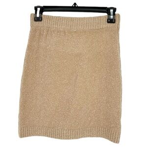 New with tags! Size XS. Tan camel Oh-so-touchable and soft in a stretchy, knit fabric, the Euphoria Knit Mini Skirt is perfect for fall outfitting. It has a ribbed, elastic waistband and does not have any pockets, closures or lining. Style it with the Euphoria Knit Zip Up Sweater and knee-high boots or heels to show some leg.