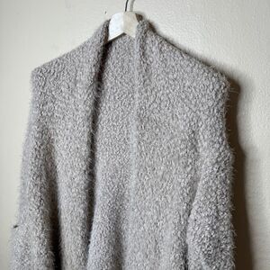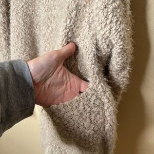 Vici Sweater Women's S/M Beige Open Front Cardigan Pockets Fuzzy