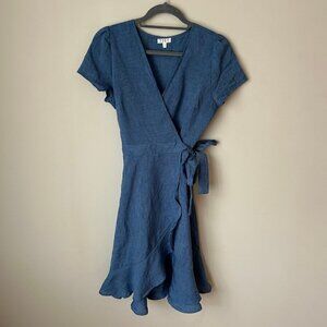Vici TCEC Blue Wrap V-Neck Short Sleeve Mini Side Tie Dress Women’s Medium