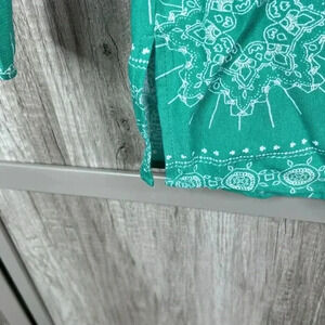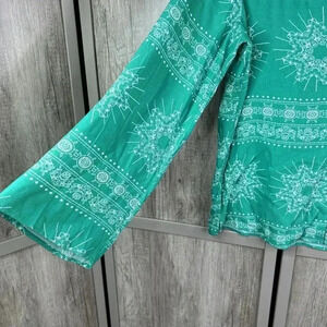 Vici Top Small Green White Long Bell Sleeve V Neckline Button Up Front