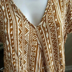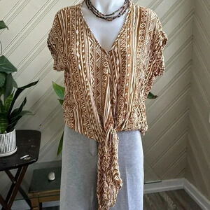 Vici Tribal Print Vneck Front Tie Top Small
