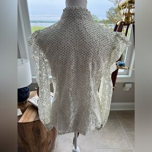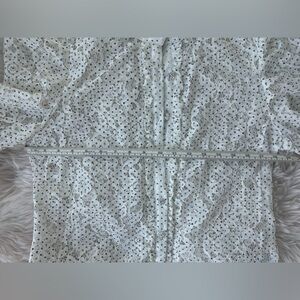 Vici White Lace Polka Dot Rhinestone Button Blouse Puff Sleeve Feminine Top M