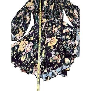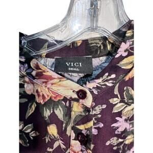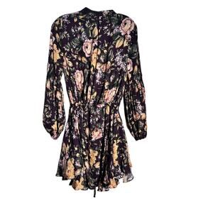 Vici Women's Black Floral Print Button Front Long Sleeves Mini Dress Size Small