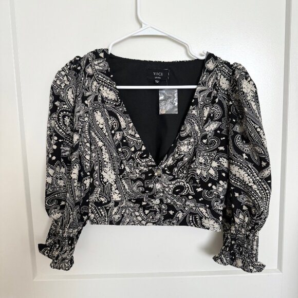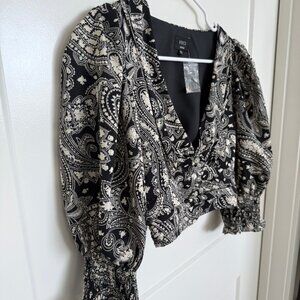 Vici Women's Boho Paisley Balloon Sleeve Crop Top - Small NWOT