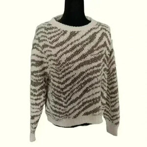 Vici Womens Brown and White Zebra Print Knit Sweater M