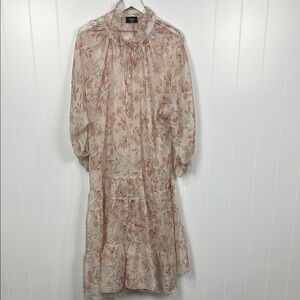 Vici Womens Midi Dress S Cream Pink Pullover Drop Waist Ruffle Cuff Floral Boho