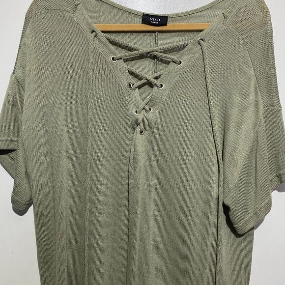 Vici Women's Olive Green Tundra Lace Tie-Up Closure Stretchy Knitted Top Large