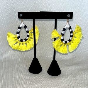 Vici Zebra Yellow Large Dangle Statement Earrings with Marble Inspired Stud
