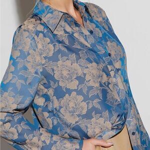 Vici cobalt blue and tan floral blouse, size S
