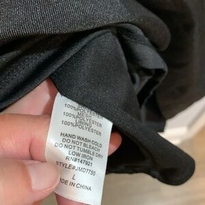 Purchase directly from Vici. Size large. Features beautiful black lace at the top, a tie at the back, an open square back and a cupcake skirt. Never worn. Tags not included. The color is black. Has a zipper on the back of the skirt.