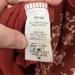 Beautiful orange/brown color with pale pink pattern. Fully lined and adjustable. No stains, holes, or odors.