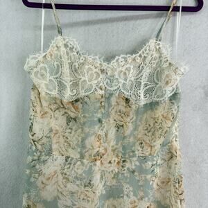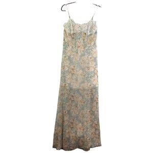 Vici x Fate Exclusive Sz L Dusty Blue Pink Peach Flowers Floral Lace Maxi Dress NWT