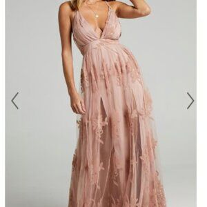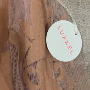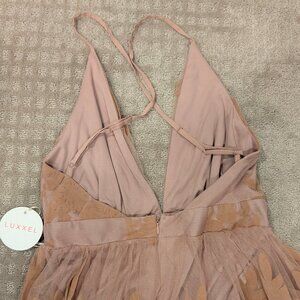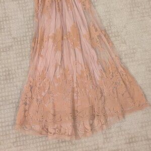NEW WITH TAGS, Never Worn Luxxel Lace Mesh Maxi Dress in Blush / Mauve featuring a floral design. Women's size Small