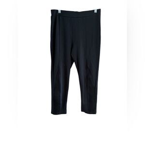 Vicinity black high-waisted stretch leggings in size Extra Large. Features a mesh design on the side. Made of 60% rayon, 35% nylon, and 5% spandex. Capri style. Excellent condition with no issues. B293
