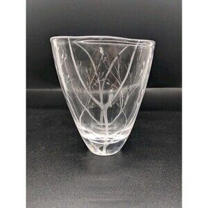 Vicke Lindstrand Signed numbered Kosta Boda Birds Trees Crystal Glass Vase Free form 4.25" tall.