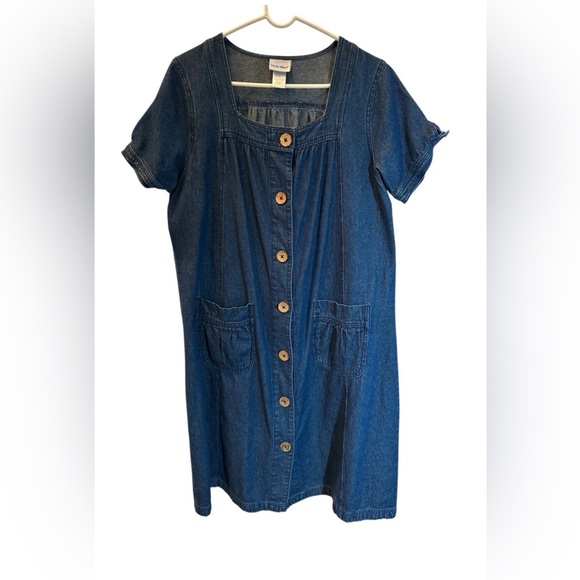 Vicki Blue Vtg 90's Womens Teacher Short Sleeve Jean Dress Dark Wash Denim Sz Lg