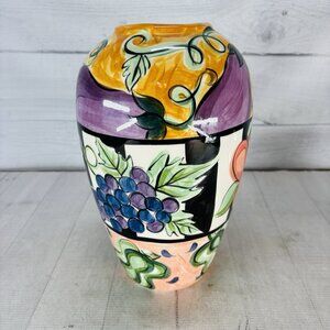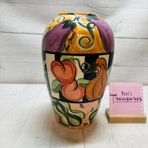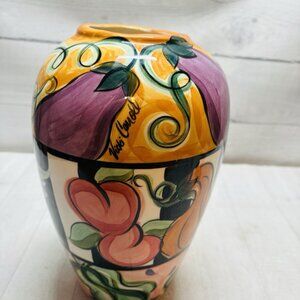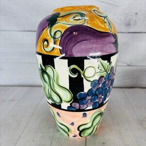 Vicki Carroll Pottery BON APPETIT Vegetables Handpainted Signed Large 12" Vase