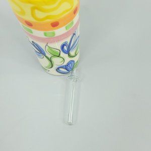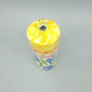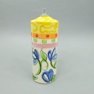 Vicki Carroll Pottery Ceramic Oil Lamp Vintage Yellow Blue White Floral Decor