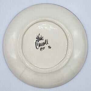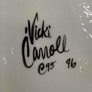 Vicki Carroll is known for her whimsical and colorful hand-painted pottery. Her work often features vibrant designs and has become quite collectible.