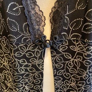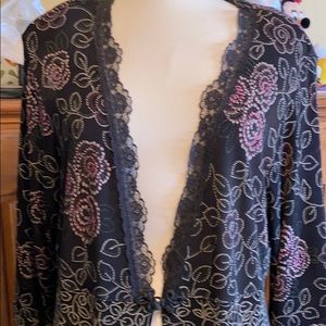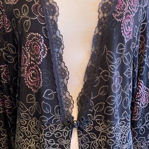 NWOT polyester with flower/leaf design; lace detail around neck; elastic detail button closure; slits on hips and back; can be used for more than work 😉