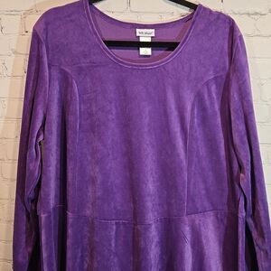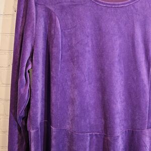 In excellent used condition no flaws. Supervsoft velour with long sleeves. Purple in color with a high scoopneck