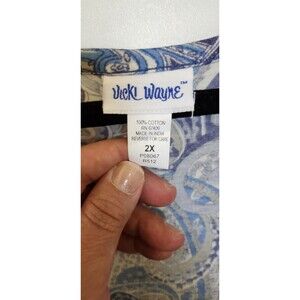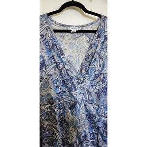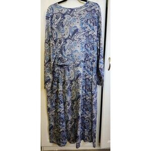 Vicki Wayne Women's 2X Blue V Neck Dress Vintage Plus Size Paisley Midi Woman