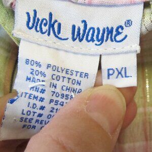 Vicki Wayne green and pink plaid cropped pants with elastic waist with drawstring tie and on-seam pockets. PXL