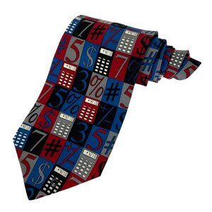 Vicky Davis New York Silk Tie It All Adds Up Numbers Symbols Calculator 1990s