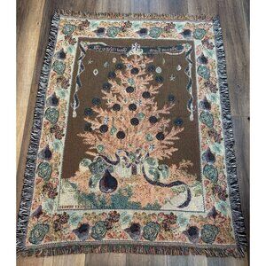 Vicky Howard ‘Peace on Earth’ Christmas Tapestry Throw Blanket Tree Fringe Cottn