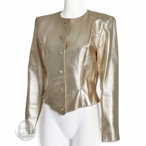 Vicky Tiel Couture Jacket Metallic Gold Leather Formal Evening Vintage Size 42
