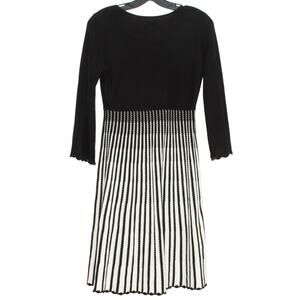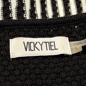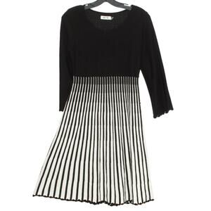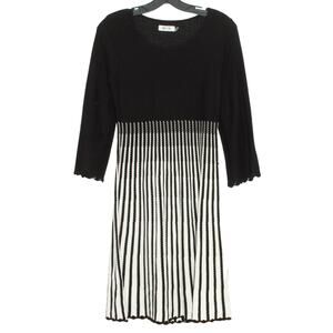 Vicky Tiel Dress 3/4 Sleeve Retro Mod Monochrome Stripe Black White Size Small