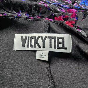 Vicky Tiel Velvet Black Blue Pink Short Sleeve Wrap Effect Dress Size L