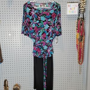 Vicky Tiel Stretchy Modest Floral Peplum Tie Waist Dress, Sz XL, NWT Career Midi